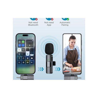 Dual Wireless Microphones for iPhone This dual wireless lavalier microphone set built-in noise reduction chip, real-time auto-sync technology, and 2.4G signal transmission with super low latency(0.008s), the sound picking-up follows the picture in real-time. Lapel microphone wireless can easily cope with various noisy environments and truly restore human voices.