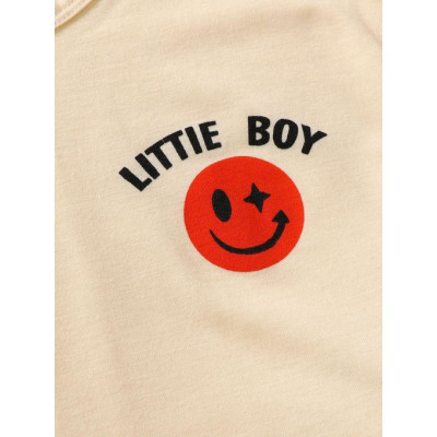2-Piece Summer Outfit for Baby Boys 0-3 Years - Smiley Face Print Round Neck Short-Sleeve T-Shirt &a